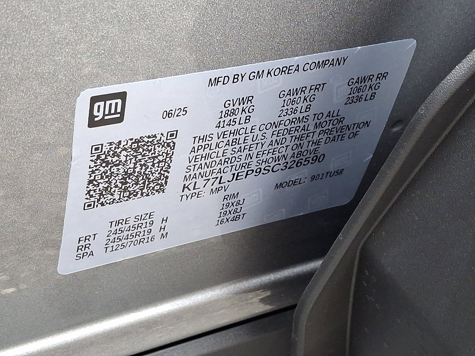 - Tires, 245/45R19 all-season, blackwall